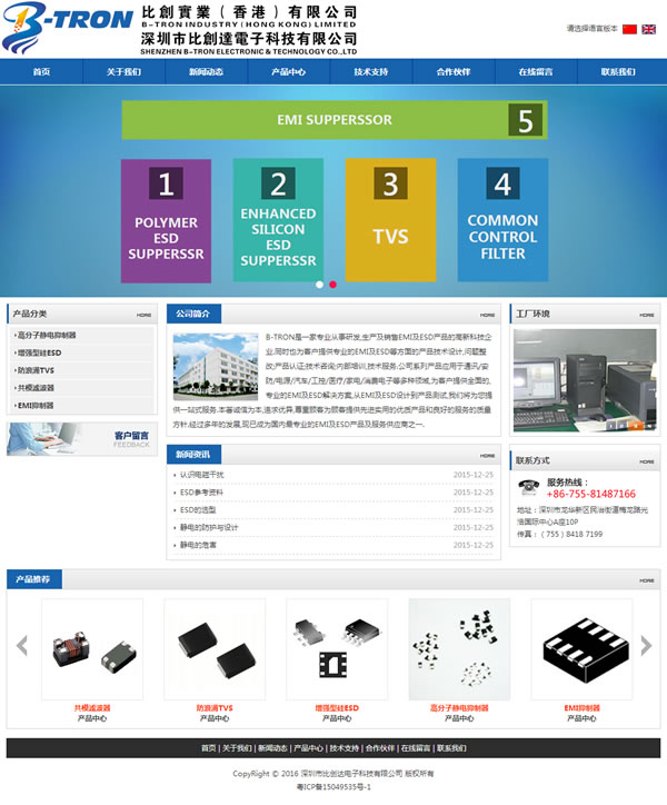 B-TRON是一家专业从事研发,生产及销售EMI及ESD产品的高新科技企业.同时也为客户提供专业的EMI及ESD等方面的产品技术设计,问题整改;产品认证;技术咨询;内部培训,技术服务.